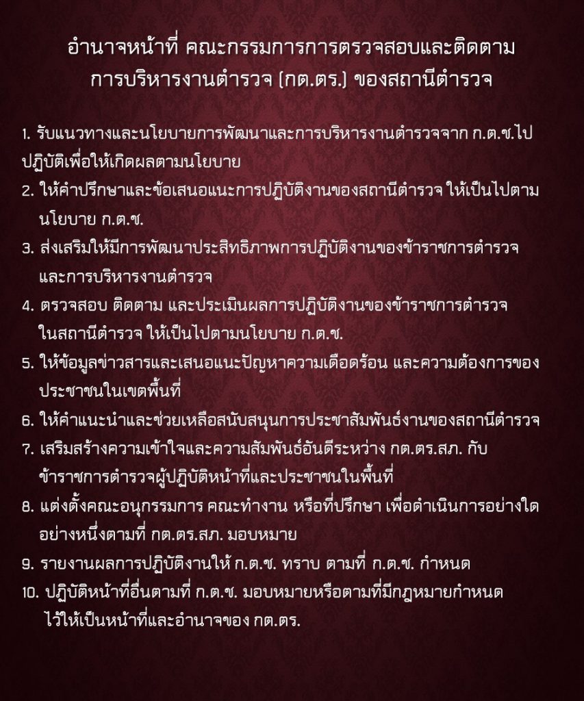 อำนาจหน้าที่ คณะกรรมการการตรวจสอบติดตามการบริหารงานตำรวจ