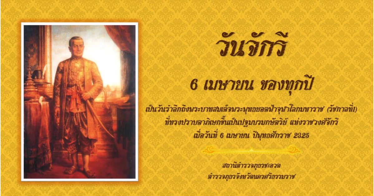 นอมรำลึกถึงพระบาทสมเด็จพระพุทธยอดฟ้าจุฬาโลกมหาราช (รัชกาลที่ 1) ทรงปราบดาภิเษกขึ้นเป็นปฐมบรมกษัตริย์ แห่งราชวงศ์จักรี