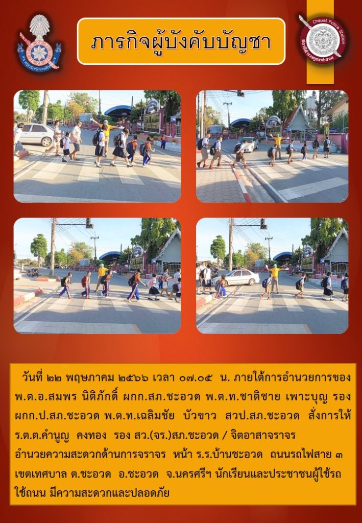 จิตอาสาจราจร ๒๒ พฤษภาคม ๒๕๖๖ 22 พฤษภาคม 2566 โดย admin / ข่าวภารกิจผู้บังคับบัญชา,ข่าวการเสริมสร้างคุณธรรมจริยธรรม ตำรวจ,ข่าวประชาสัมพันธ์,โครงการจิตอาสา จิตอาสาจราจรอำนวยความสะดวกด้านการจราจรหน้าโรงเรียนบ้านชะอวด ถนนรถไฟสาย3 เขตเทศบาลตำบลชะอวด อ.ชะอวด จ.นครศรีฯ นักเรียนและประชาชนผู้ใช้รถใช้ถนนมีความสะดวกและปลอดภัย