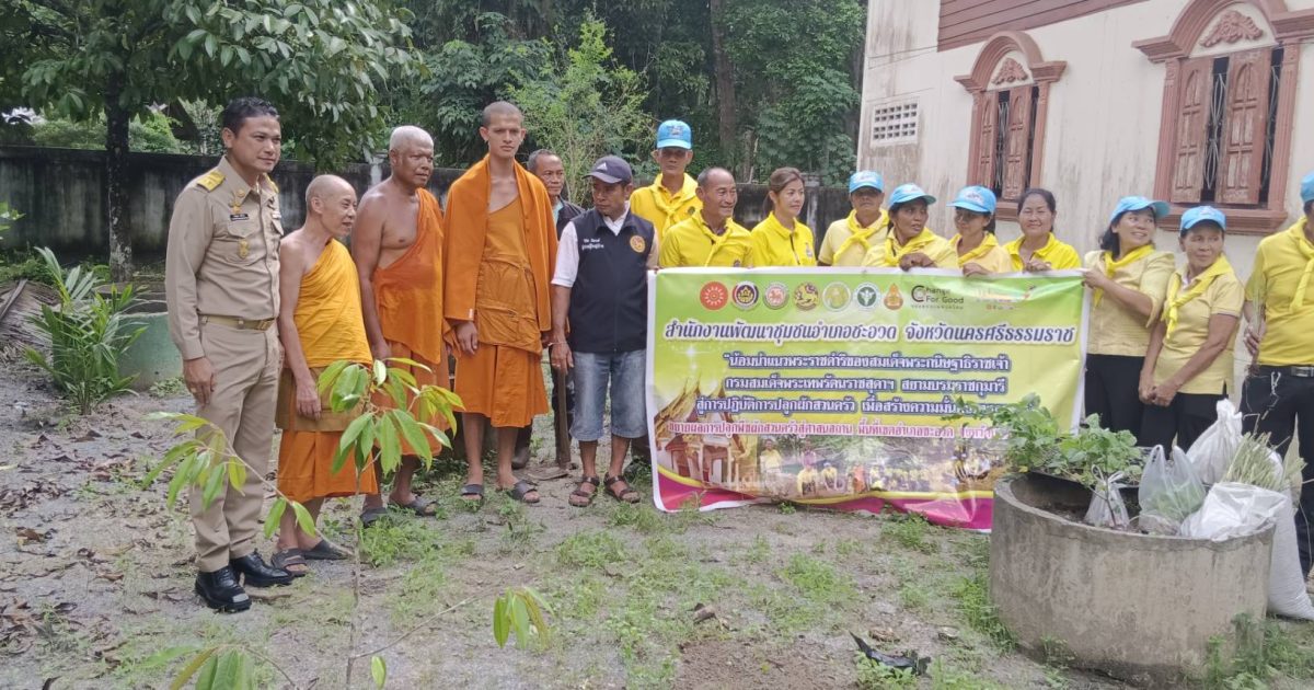 ร่วมกิจกรรมจิตอาสา พัฒนาชุมชน น้อมนำแนวพระราชดำริของสมเด็จพระกนิษฐาธิราช เจ้ากรมสมเด็จพระเทพรัตนราชสุดาฯ สยามบรมราชกุมารี สู่การปฏิบัติการปลูกผักสวนครัว เพื่อสร้างความมั่นคงฯ ขยายผลการปลูกพืชผักสวนครัวสู่ศาสนสถาน พื้นที่เขตอำเภอชะอวด
