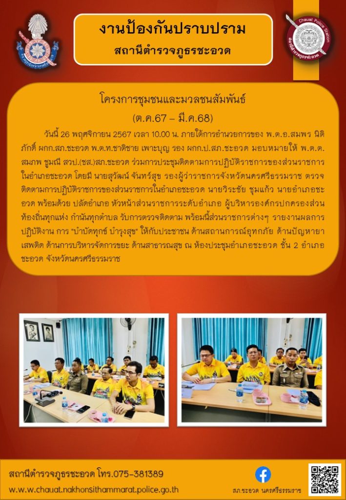 ชุดปฏิบัติการ ตำรวจชุมชนสัมพันธ์ ร่วมประชุมติดตามการปฏิบัติราชการของส่วนราชการในอำเภอชะอวด