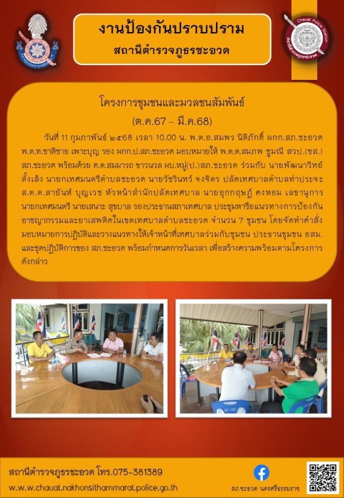 ชุดปฏิบัติการ ตำรวจชุมชนสัมพันธ์ ร่วมประชุมหารือแนวทางการป้องกันอาชญากรรมและยาเสพติดในเขตเทศบาลตำบลชะอวด