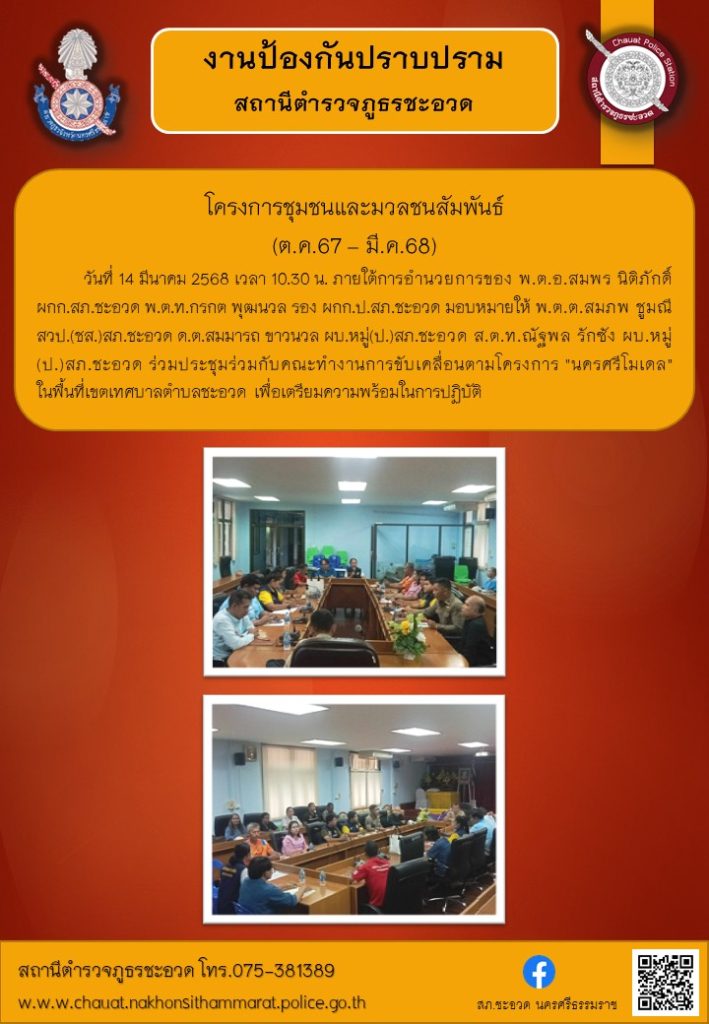 ชุดปฏิบัติการ ตำรวจชุมชนสัมพันธ์ ร่วมประชุมขับเคลื่อน โครงการ “นครศรีโมเดล” ในเขตเทศบาลตำบลชะอวด