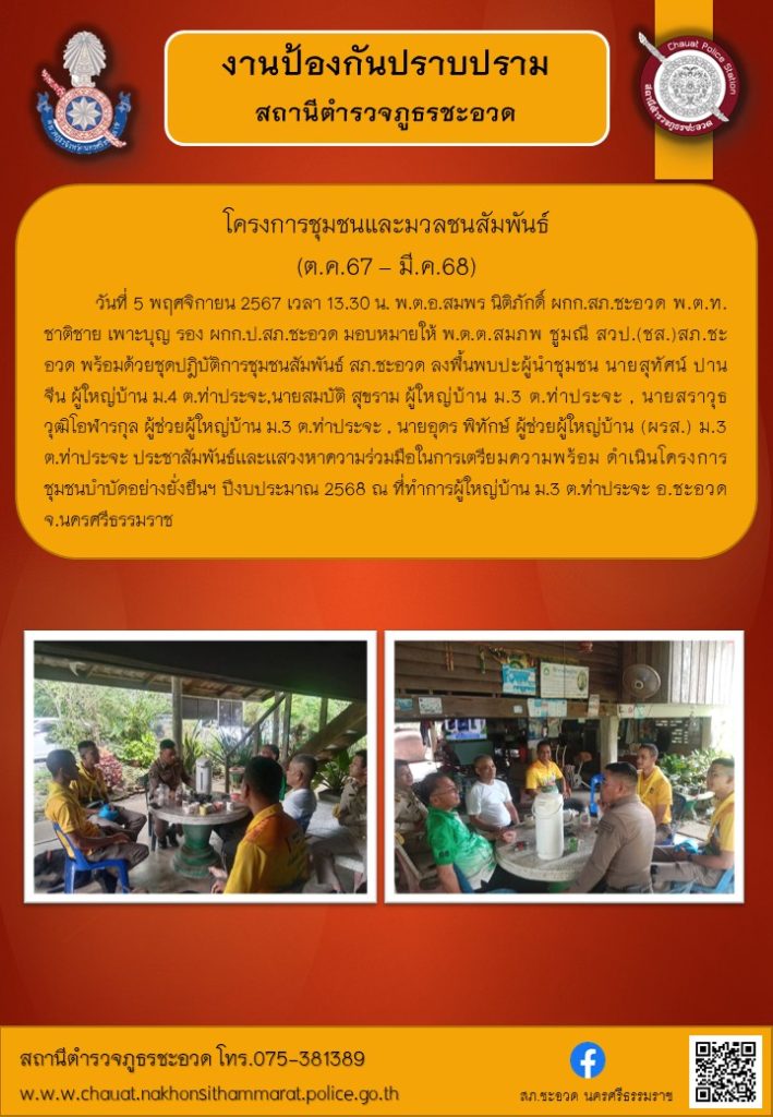 ชุดปฏิบัติการ ตำรวจชุมชนสัมพันธ์ ลงพื้นที่รับผิดชอบ