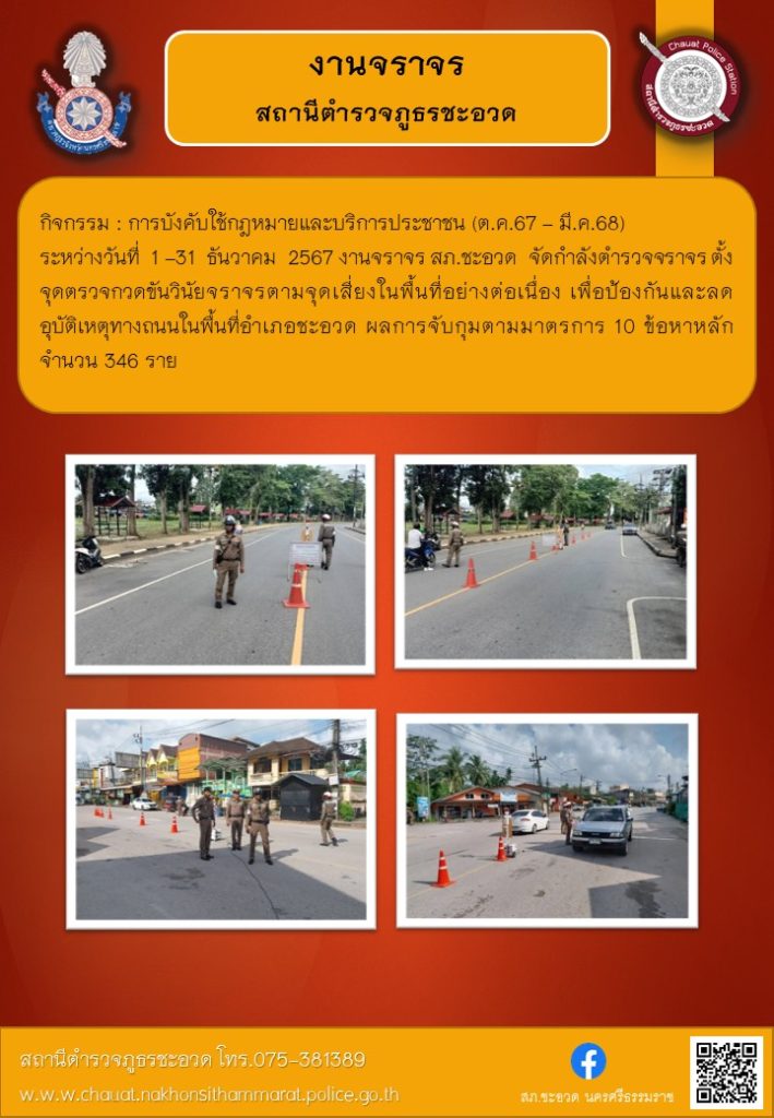 ตั้งจุดตรวจกวดขันวินัยจราจรตามจุดเสี่ยงในพื้นที่ ช่วงเทศกาลปีใหม่ 2568