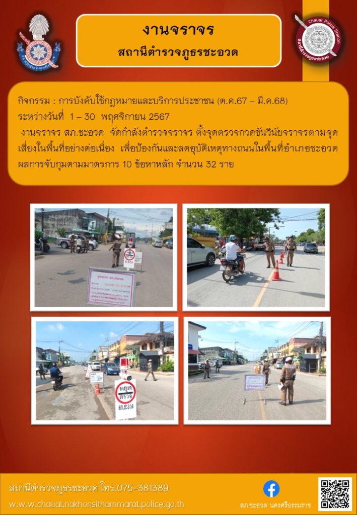 ตำรวจจราจรตั้งจุดตรวจกวดขันวินัยจราจรตามจุดเสี่ยงในพื้นที่