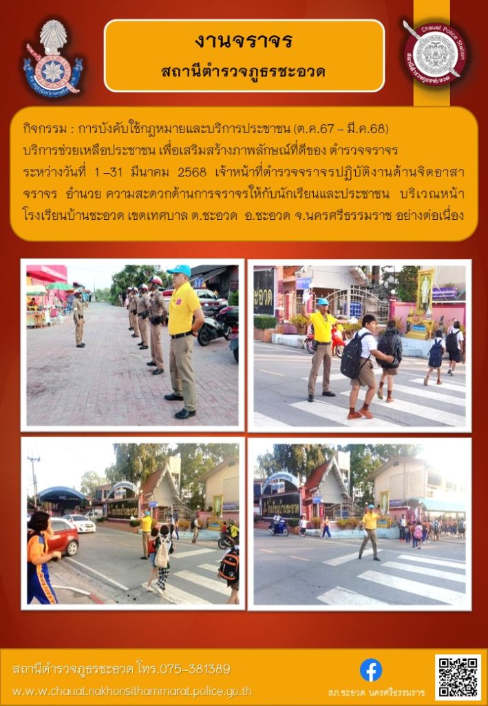 ตำรวจจราจรปฏิบัติงานด้านจิตอาสาจราจร ในพื้นที่เขตเทศบาลตำบลชะอวด
