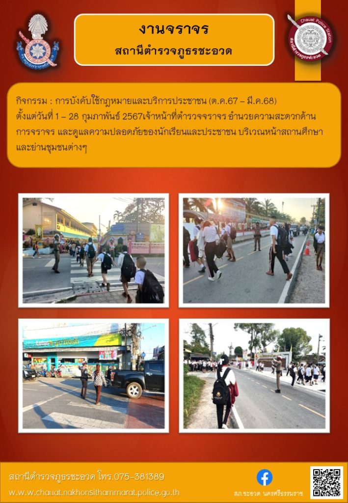 ตำรวจจราจร อำนวยความสะดวกด้านการจราจร และดูแลความปลอดภัยของนักเรียนและประชาชน บริเวณหน้าสถานศึกษา และย่านชุมชนต่างๆ ประจำเดือน กุมภาพันธ์ 2568