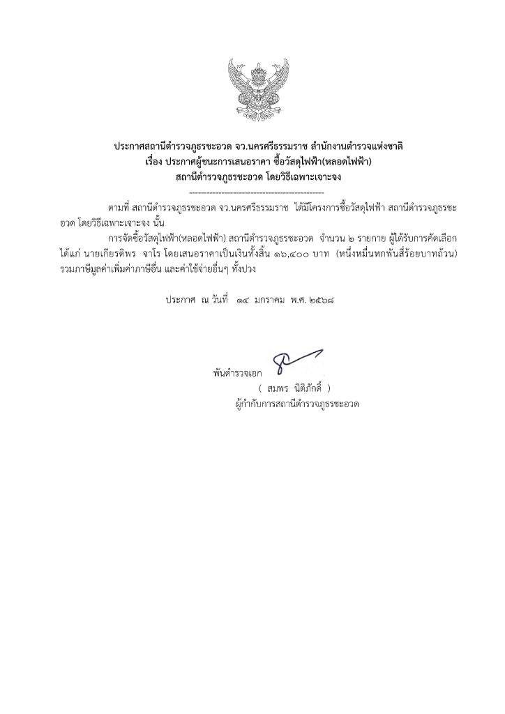 ประกาศจัดซื้อจัดจ้าง วัสดุไฟฟ้า (หลอดไฟฟ้า) 14 มกราคม 2568 โดย admin / ข่าวจัดซื้อจัดจ้าง,ข่าวจัดซื้อจัดจ้าง,ประกาศข่าวจัดซื้อจัดจ้าง ประกาศผลการเสนอราคา