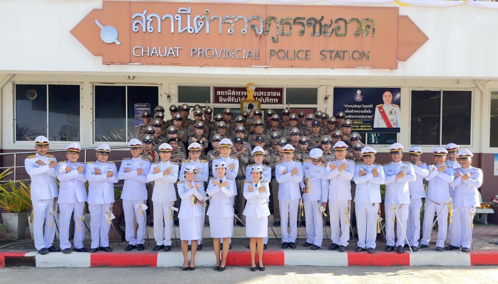 วันที่ 23 กรกฎาคม 2568 เวลา 09.00 น. พ.ต.อ.สมพร นิติภักดิ์ ผกก.สภ.ชะอวด พ.ต.ท.กรกต พุฒนวล รอง ผกก.ป.สภ.ชะอวด พ.ต.ท.ปรีชา ฉิมภักดี รอง ผกก.(สอบสวน) สภ.ชะอวด พ.ต.ท.ไพโรจน์ เมืองสุวรรณ รอง ผกก.สส.สภ.ชะอวด พร้อมด้วยข้าราชการตำรวจ สถานีตำรวจภูธรชะอวด ทุกแผนกงาน