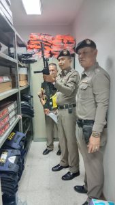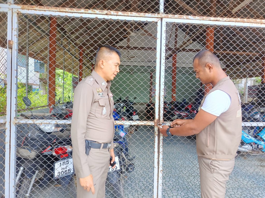พ.ต.อ.สมพร นิติภักดิ์ ผกก.สภ.ชะอวด ตรวจสอบการจัดการทรัพย์สินของราชการ ของบริจาค และการจัดเก็บของกลาง มั่นคง แข็งแรงเรียบร้อย ปลอดภัย