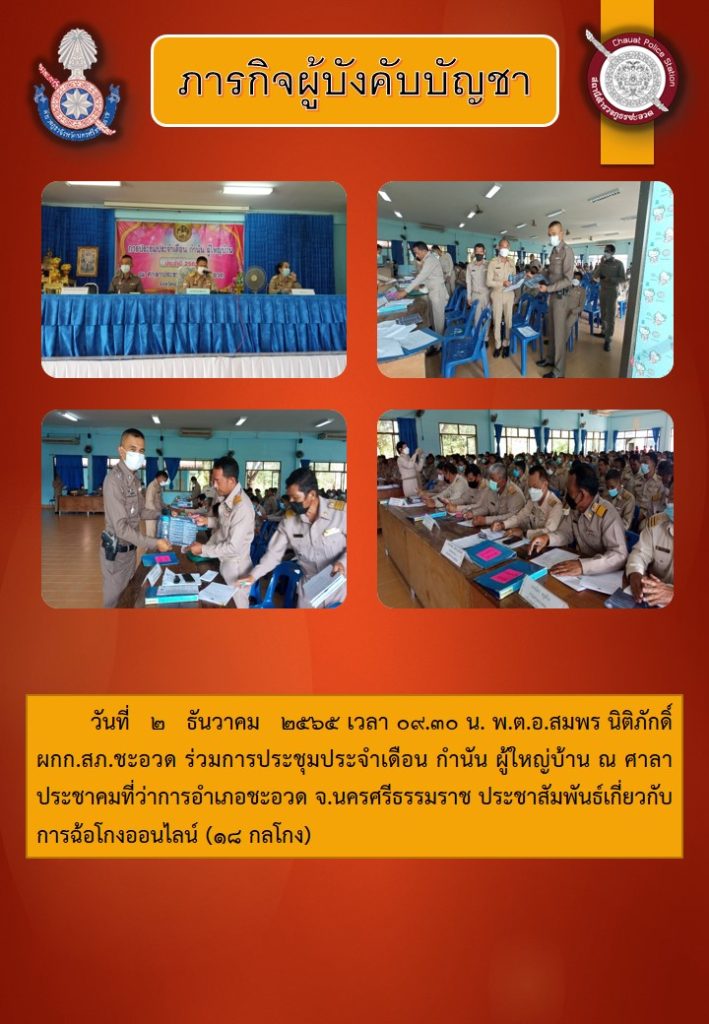 ภารกิจผู้บังคับบัญชา ๒ ธันวาคม ๒๕๖๕ 2 ธันวาคม 2565 โดย admin / ข่าวประชาสัมพันธ์,ข่าวประชาสัมพันธ์,ข่าวฝากประชาสัมพันธ์,ข่าวภารกิจผู้บังคับบัญชา,ข่าวประชาสัมพันธ์,ป้องกันอาชญากรรมทางเทคโนโลยี ร่วมประชุมกับผู้นำท้องถิ่น เเละประชาสัมพันธ์เกี่ยวกับการฉ้อโกงออนไลน์