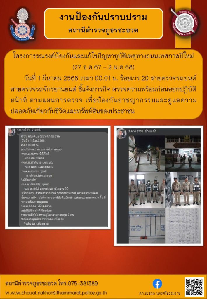 ร้อยเวร 20 สายตรวจรถยนต์ ตรวจความพร้อม ชี้แจงภาระกิจ ก่อนออกตรวจพื้นที่ ในเขตรับผิดชอบ