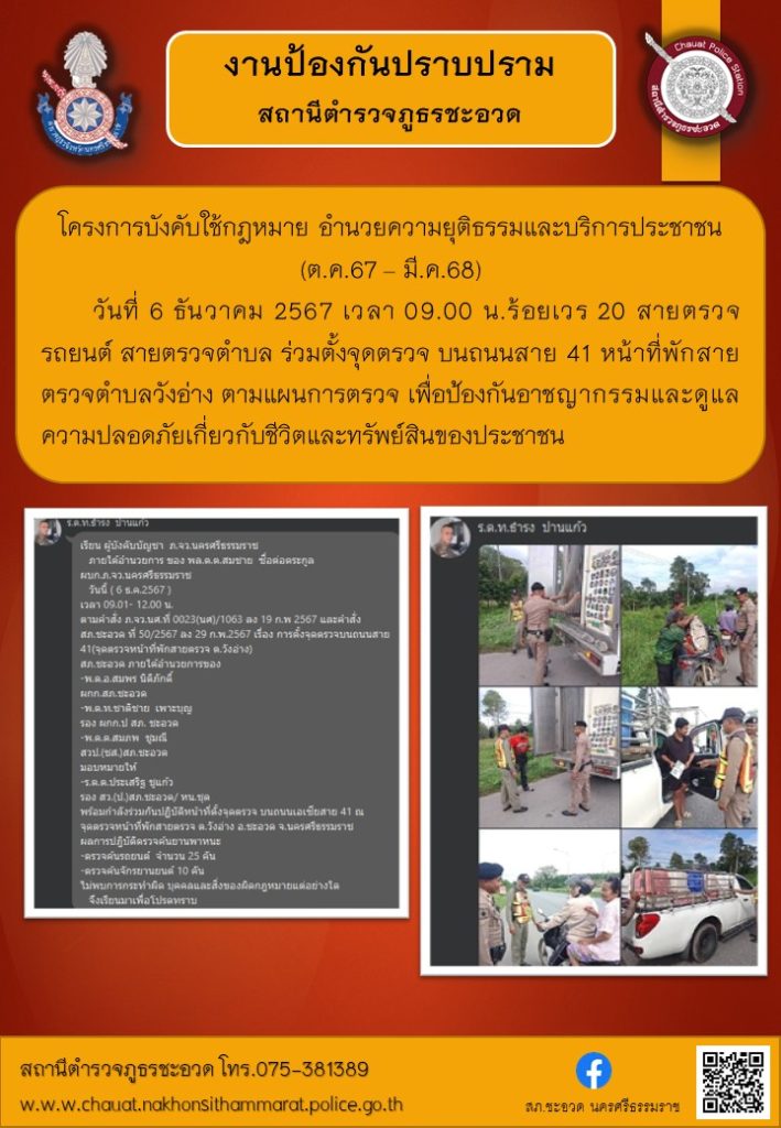 ร้อยเวร 20 สายตรวจรถยนต์ สายตรวจตำบล ตั้งจุดตรวจสัมพันธ์