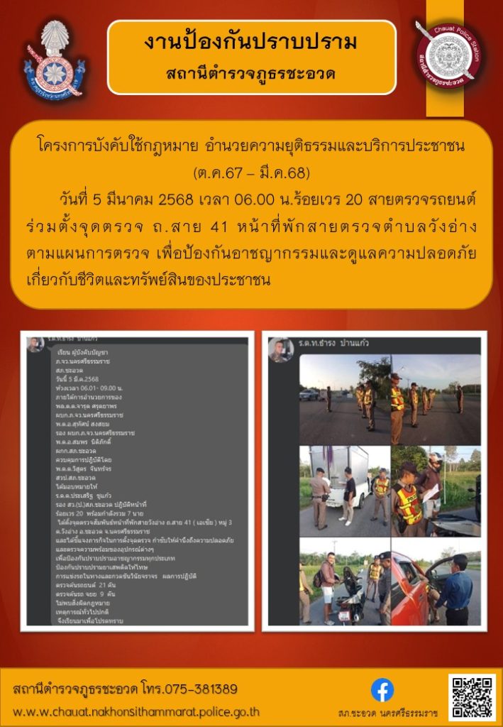 ร้อยเวร 20 สายตรวจรถยนต์ สายตรวจตำบล ตั้งจุดตรวจสัมพันธ์