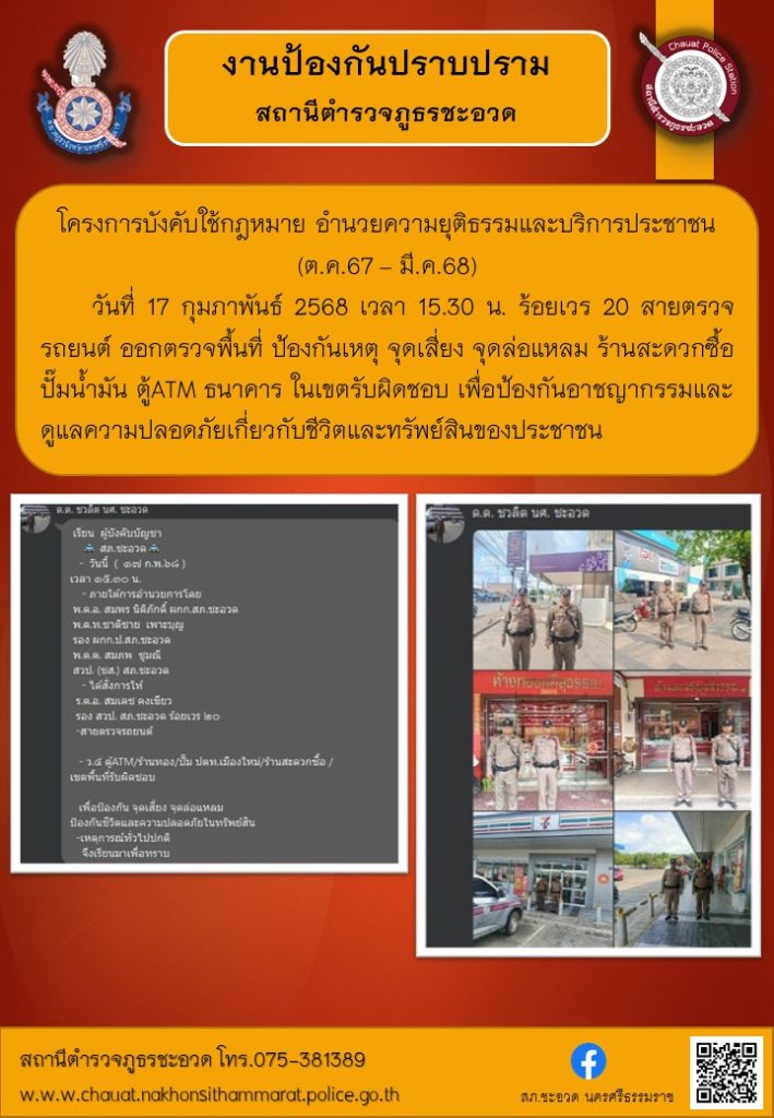 ร้อยเวร 20 สายตรวจรถยนต์ ออกตรวจพื้นที่ ในเขตรับผิดชอบ