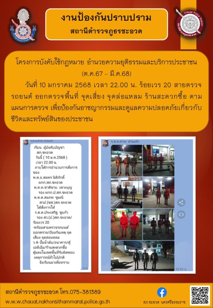 ร้อยเวร 20 สายตรวจรถยนต์ ออกตรวจพื้นที่ ในเขตรับผิดชอบ
