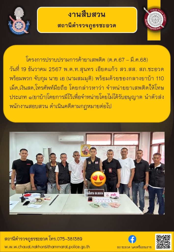 สืบสวนจับกุม คดียาเสพติด ของกลางยาบ้า 110 เม็ด