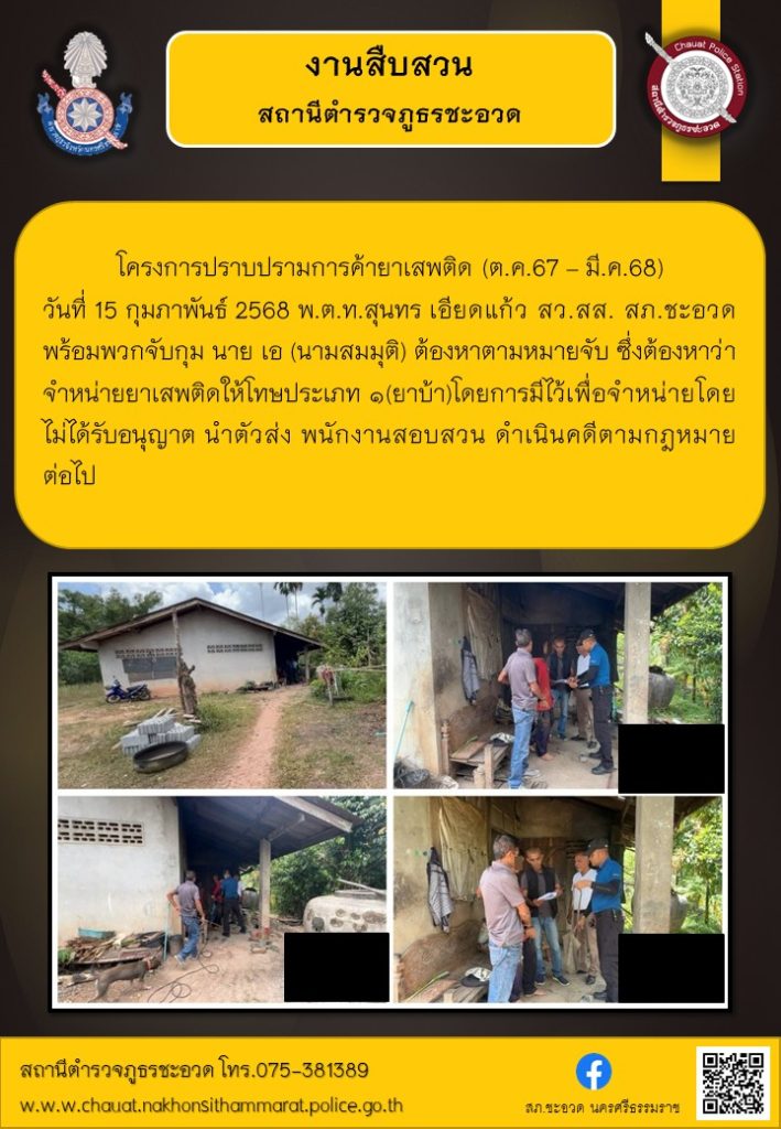 สืบสวนจับกุม ตามหมายจับคดียาเสพติด 15 กุมภาพันธ์ 2568 โดย admin / งานสืบสวน,งานสืบสวน,สส.กุมภาพันธ์ 2568