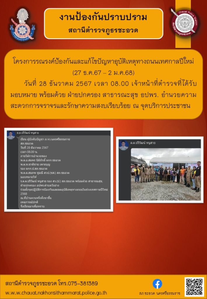 เจ้าหน้าที่ตำรวจ ปฏิบัติหน้าที่ประจำจุดบริการประชาชน เทศกาลปีใหม่ 2568
