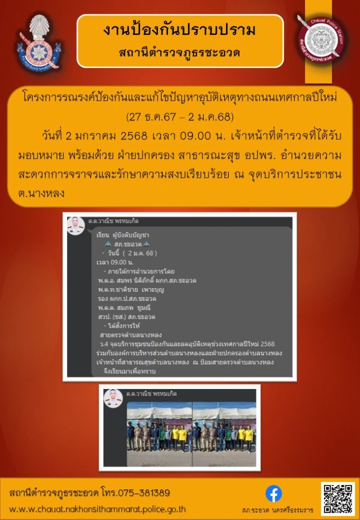 เจ้าหน้าที่ตำรวจ ปฏิบัติหน้าที่ประจำจุดบริการประชาชน เทศกาลปีใหม่ 2568