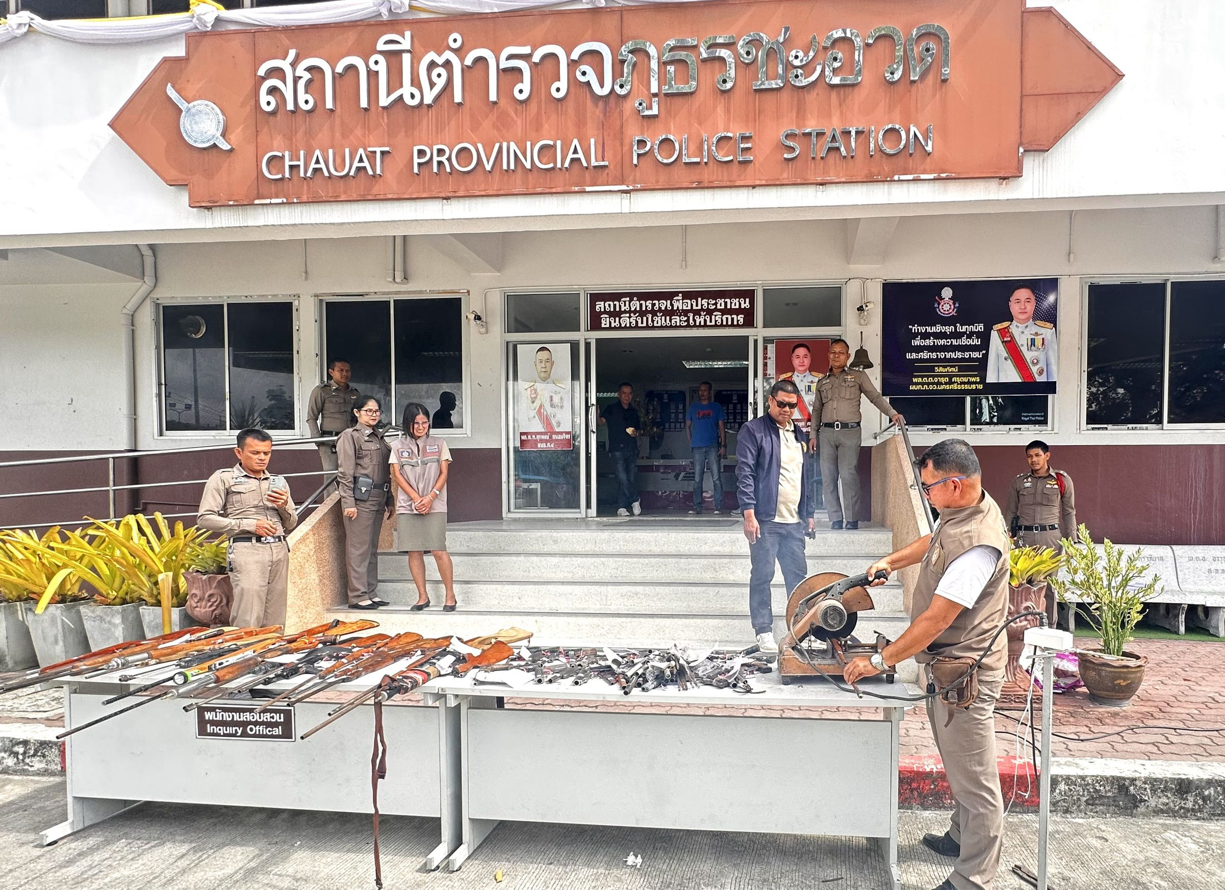 วันที่ 31 มีนาคม 2568 คณะกรรมการทำลายอาวุธปืนของกลาง ในคดีถึงที่สุด สภ.ชะอวด