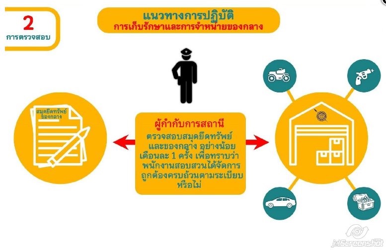 หัวหน้าสถานี พร้อมคณะกรรมการตรวจสอบสถานที่จัดเก็บของกลาง ให้รัดกุม มอบหมายผู้รับผิดชอบและจัดเก็บให้เป็นระเบียบ